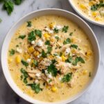 This Mexican Street Corn Soup brings the vibrant flavors of traditional elote into a comforting and creamy soup. Featuring sautéed vegetables, fire-roasted corn, tender shredded chicken, and a blend of spices, it is finished with creamy sour cream, cheese, and fresh lime for a deliciously hearty meal perfect for any time.