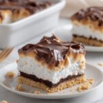 - Frost the cake: Pour the warm chocolate frosting evenly over the marshmallow layer. Gently spread it using a spatula to cover the entire surface.