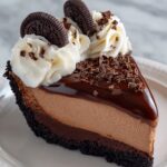 Once set, your cheesecake is ready to shine! Add a generous swirl of whipped cream and sprinkle chocolate shavings or your preferred toppings over the top. Now comes the best part — slice it up and dig in. Each bite is a perfect balance of buttery crust, creamy chocolate cheesecake, and heavenly toppings that will keep everyone asking for seconds.