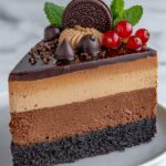 Every ingredient in this cheesecake plays a crucial role in creating its signature texture and flavor. From the crunchy chocolate cookie crust to the velvety chocolate-infused filling and the sweet, nutty topping, each element is simple yet essential to the final masterpiece.