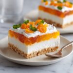 - Garnish and serve: Before serving, garnish the top with a sprinkle of orange zest or arrange mandarin orange segments to add a fresh, colorful touch. Cut into squares and enjoy.