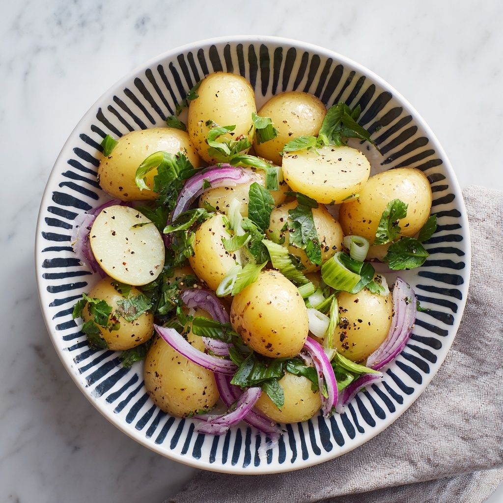 In a large mixing bowl, gently toss the warm potatoes with the thinly sliced red onion, fresh green onions, chopped parsley, and fragrant dill. Pour your zesty dressing over the ingredients and carefully toss again, ensuring everything is coated evenly. Taste and adjust the seasoning with more salt or lemon juice if needed. Let your salad rest for 15 to 20 minutes before serving—this waiting time allows all the wonderful flavors to mingle and deepen.