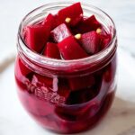 This Pickled Beets recipe offers a vibrant and tangy side dish featuring tender beets simmered in a sweet and spiced apple cider vinegar brine. Easy to prepare and perfect for enhancing salads, sandwiches, or as a flavorful accompaniment, these refrigerator pickled beets improve in taste after a few days and can be stored for up to three weeks in the fridge.