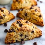 Reheat frozen or leftover scones by warming them in a preheated oven at 325°F (160°C) for about 10 minutes. This brings back the fresh-baked texture and warms the chocolate chips perfectly, while keeping the inside soft and tender.