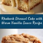 This Rhubarb Streusel Cake with Warm Vanilla Sauce is a delightful dessert featuring a tender, moist cake loaded with tart rhubarb chunks and topped with a buttery, crumbly streusel. Accompanied by a luscious warm vanilla sauce, this recipe perfectly balances sweetness and tang, making it an unforgettable treat for any occasion.
