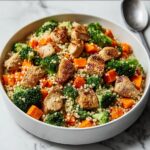 This Roasted Butternut Squash Broccoli Cheddar Chicken Couscous recipe is a hearty and flavorful one-pot meal combining tender roasted butternut squash, succulent seasoned chicken, tender broccoli florets, pearl couscous, and melted sharp cheddar cheese. It’s a balanced and comforting dish perfect for a nutritious family dinner that can be prepared in just 40 minutes.