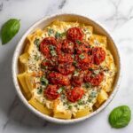 A creamy and comforting roasted tomato and garlic ricotta pasta featuring blistered cherry tomatoes, soft roasted garlic, and a luscious ricotta cheese sauce with fresh basil and Parmesan. This Italian-inspired dish is perfect for an easy weeknight meal that combines wholesome ingredients with rich, vibrant flavors.