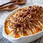 This Southern Maple Sweet Potato Casserole is a comforting and delicious holiday side dish, featuring creamy mashed sweet potatoes sweetened with pure maple syrup and spiced with cinnamon and nutmeg. Topped with a crunchy pecan oat streusel, it’s baked to golden perfection and sure to please any crowd.