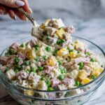 Pour the dressing over your combined ingredients and gently mix until the salad is evenly coated. The dressing should cling to every pea, piece of ham, and crumble of bacon, unifying the flavors and textures beautifully. For the best flavor, cover the bowl and chill the salad in the refrigerator for at least one hour before serving. This resting time lets the flavors meld and enhances the creaminess.