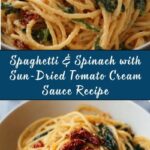 A quick and flavorful Spaghetti and Spinach dish tossed in a creamy sun-dried tomato sauce. This vegetarian dinner combines tender pasta with fresh spinach and a rich Parmesan cream sauce infused with garlic and sun-dried tomatoes for a delightful melt-in-your-mouth experience.