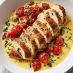 Return the cooked chicken breasts to the skillet, nestling them into the sauce. Allow everything to cook over low heat for about 5 minutes, letting the flavors marry and the chicken soak up the sauce’s richness. Sprinkle freshly chopped parsley or cilantro on top for a bright and fresh garnish that ties all the layers of flavor together.