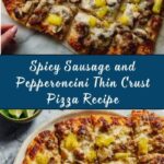This Spicy Sausage and Pepperoncini Thin Crust Pizza features a crisp thin crust topped with savory spicy Italian sausage, tangy sliced pepperoncini peppers, melted mozzarella, and aromatic herbs. Perfectly baked to golden perfection, this Italian-American pizza offers a delightful balance of spicy, tangy, and cheesy flavors in every bite.