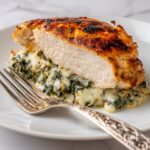 This Spinach Stuffed Chicken recipe features tender chicken breasts filled with a creamy mixture of cream cheese, Parmesan, mayonnaise, and fresh spinach, seasoned to perfection and baked to a juicy finish. It’s a simple yet flavorful dish perfect for a wholesome family dinner.