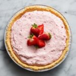 Before serving, add the finishing touches. Arrange fresh strawberry slices atop the pie to add vibrant color and a fresh burst of flavor. Optionally, add dollops of whipped cream to make each slice feel like a special occasion. Slice carefully with a sharp knife, and enjoy each bite of this creamy, fruity masterpiece that feels like summer captured on a plate.