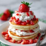 Delight in these Strawberry Shortcake Pancakes, a fluffy and fruity breakfast treat perfect for brunch or a special morning. With fresh strawberries folded into tender pancake batter and layers of whipped cream, this recipe combines classic shortcake flavors with the comforting appeal of pancakes for a delicious start to your day.