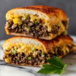 Slice your French loaf lengthwise to create two even halves. This is where the magic begins because carefully scooping out the soft bread center will make space for the delicious filling to nestle. Don’t toss the scooped bread; tear it into small pieces and fold it into the beef mixture. This step helps bind the filling and adds a wonderful texture contrast inside.