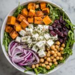 This vibrant Sweet Potato and Chickpea Salad with Feta and Herbs blends roasted sweet potatoes and chickpeas with fresh greens, aromatic herbs, and a flavorful spiced lemon dressing. Perfect as a nourishing, wholesome meal packed with textures and bold flavors, this salad is ideal for a healthy lunch or light dinner.