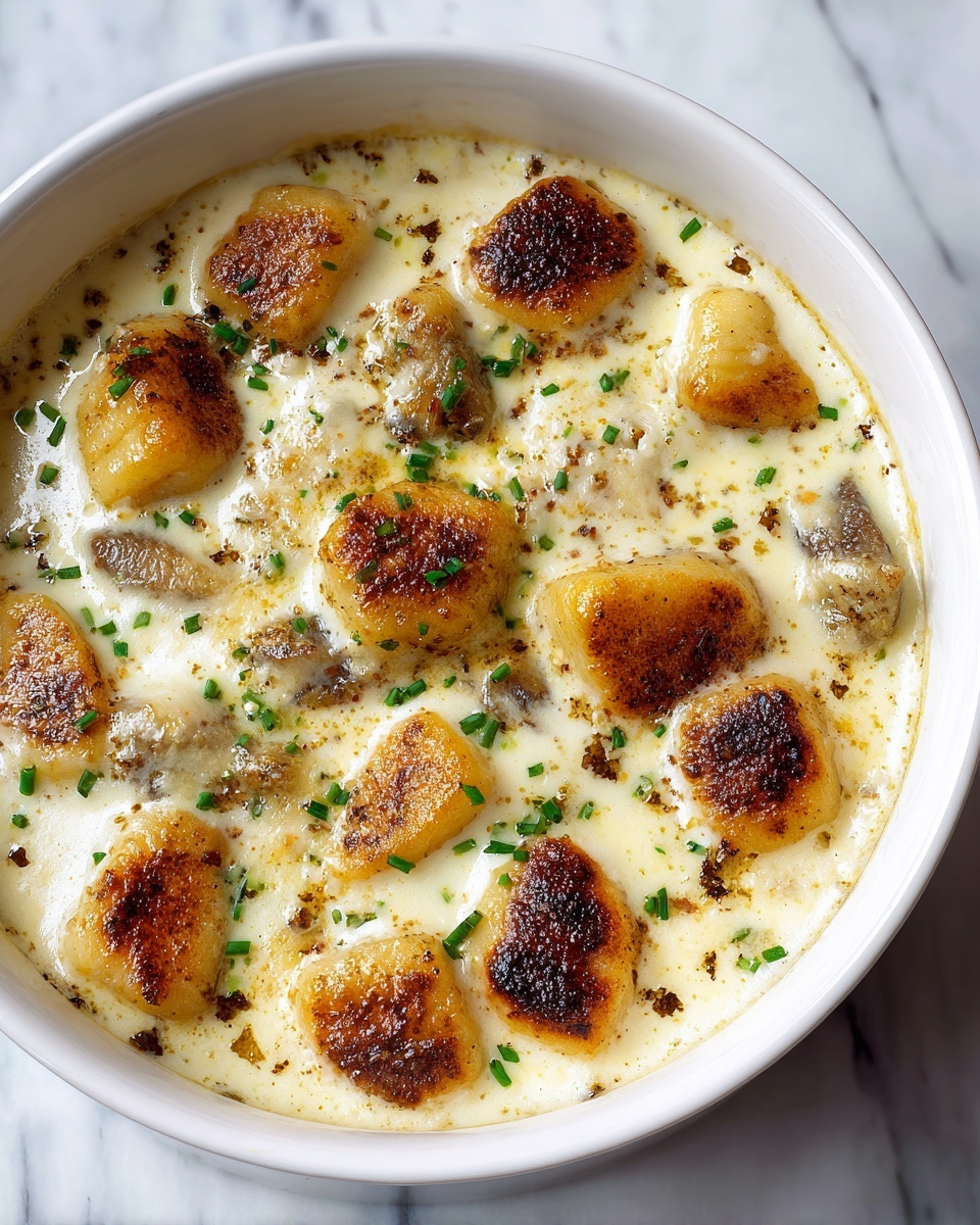 In a skillet over medium heat, melt the butter with olive oil. Add the minced garlic and chopped fresh sage, cooking just until fragrant—around 1 to 2 minutes. Toss in the cooked gnocchi and sauté them gently until they develop a light, golden crust. Finish by seasoning with salt and pepper. This last step adds a toasty richness and an herbaceous lift that makes the dish truly irresistible.