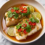 Thai Lime Garlic Steamed Fish is a fragrant and healthy main course featuring a whole white fish steamed to perfection and infused with zesty lime, aromatic garlic, and fresh herbs. This light dish is perfectly balanced with the tang of lime juice, the heat from Thai chilies, and the umami of fish sauce, making it an authentic Thai delight that’s easy to prepare and ideal for a wholesome meal.