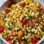 This vibrant and refreshing Ultimate Corn Salad showcases the sweet crunch of fresh corn combined with juicy cherry tomatoes, crisp bell peppers, refreshing cucumber, and tangy feta cheese. Tossed in a zesty lime and olive oil dressing with a hint of honey, it’s a perfect bright and fresh dish ideal for summer gatherings or a healthy side.