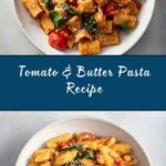 A simple and flavorful Tomato & Butter Pasta recipe featuring a rich garlic-anchovy-tomato sauce enriched with butter and fresh basil, topped with parmesan cheese. Ready in 20 minutes, this dish balances savory anchovies with sweet cherry tomatoes for a deliciously quick meal.