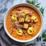Tuscan Tortellini Soup is a hearty and flavorful Italian-inspired soup featuring savory Italian sausage, tender cheese tortellini, fresh spinach, and a creamy tomato broth enriched with Parmesan cheese. Perfect for cozy meals, this soup balances rich flavors and comforting textures for an irresistible dish.