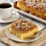 Once baked, take the cake out of the oven and let it rest for about 5 minutes in the pan. Gently run a knife around the edges to loosen the cake from the sides. Now comes the best part: carefully flipping the cake onto a serving platter while it’s still warm to reveal the glistening pecan topping that feels like a gift waiting to be unwrapped. Allow it to cool slightly before slicing so the topping can set just enough for clean cuts.