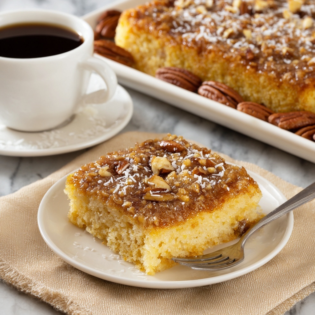 This cake shines as a charming finale to any meal but also pairs delightfully with fresh fruit like sliced peaches or berries. These add a bright contrast in texture and flavor. For a cozy afternoon treat, serve it alongside a strong cup of black coffee or rich Southern-style sweet tea to enhance the cake’s sweetness and buttery notes.