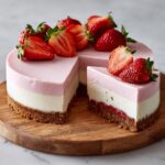 This Vegan Strawberry Cheesecake is a creamy, luscious dessert made entirely from plant-based ingredients. Featuring a crunchy graham cracker crust and a smooth cashew-based filling, it’s naturally sweetened with maple syrup and brightened with fresh lemon juice. Topped with fresh strawberries marinated in a touch of maple syrup and lemon, this cheesecake is perfect for a refreshing, dairy-free treat that appeals to vegans and dessert lovers alike.