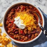 While this chili is hearty enough to stand on its own, pairing it with the perfect side makes for an even more satisfying meal. Cornbread or warm dinner rolls are classic companions, soaking up every last drop. A simple green salad balances the richness, and for a Tex-Mex twist, serve with a side of Spanish rice or seasoned tortilla chips.