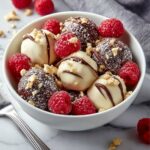 White Chocolate Raspberry Cheesecake Balls are a luscious, bite-sized dessert combining creamy cheesecake, sweet white chocolate, and fresh raspberries, coated in a crisp white chocolate shell and garnished with graham cracker crumbs for a delightful texture.