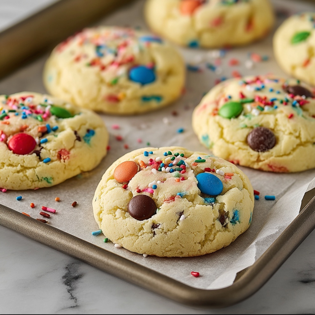 These Yellow Cake Mix Cookies are a quick and easy treat featuring a simple dough made from yellow cake mix, eggs, and oil. Enhanced with optional vanilla and your choice of mix-ins like chocolate chips or sprinkles, these soft, sweet cookies bake up perfectly soft on the inside with gently set edges, making them an ideal dessert or snack for any occasion.